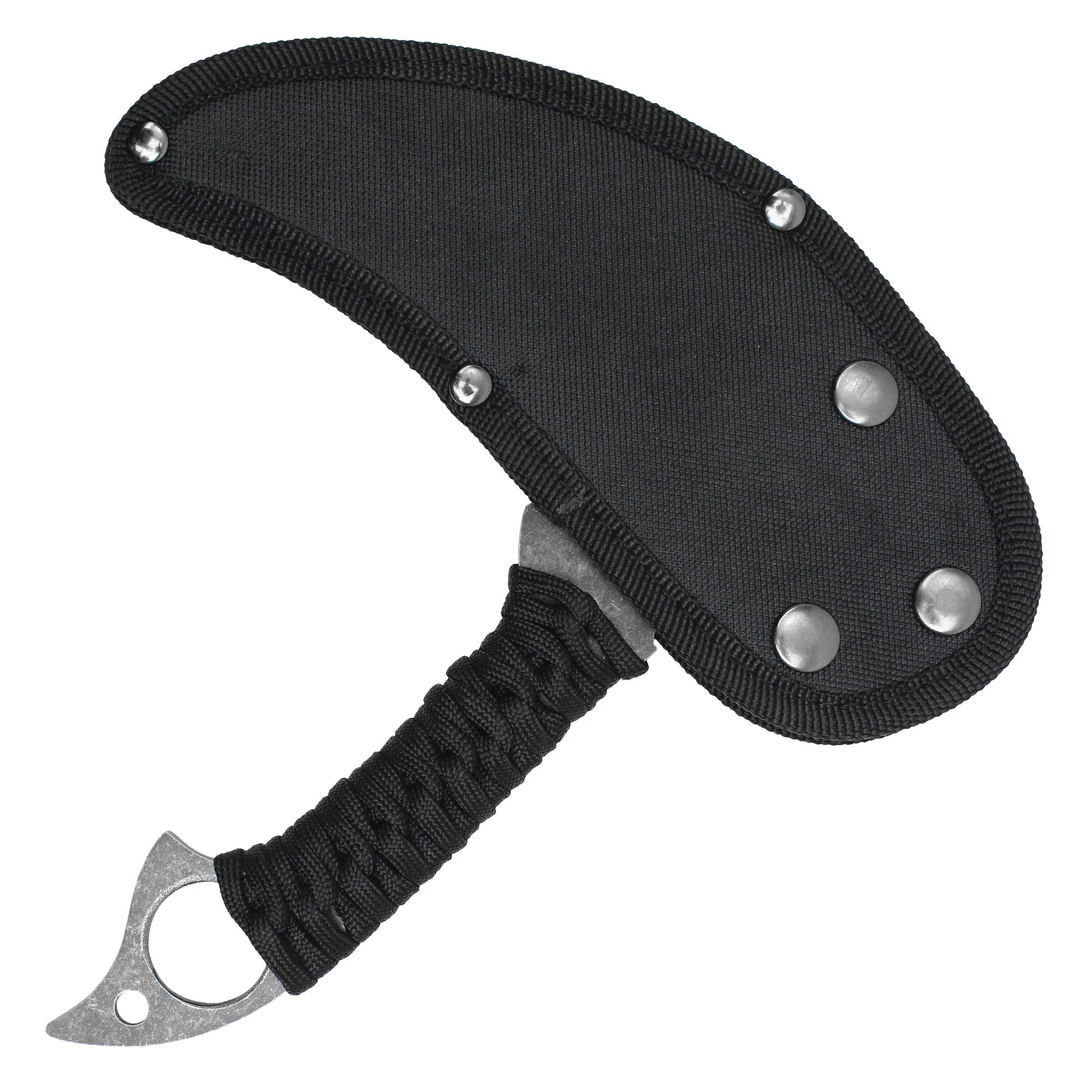 The Wartech 7.5" Tactical Tomahawk is crafted for the modern warrior, featuring a 4" stonewashed steel blade with a talon-like curve that excels in slicing and piercing tasks. The stonewashed finish not only enhances its stealthy look but also adds corrosion resistance for durability in harsh environments. The 5" cord-wrapped handle provides a secure grip for precise control and reduced hand fatigue, making it a reliable tool for serious tactical enthusiasts. Complete with a durable nylon sheath, this tomahawk is an essential addition to any tactical gear collection.