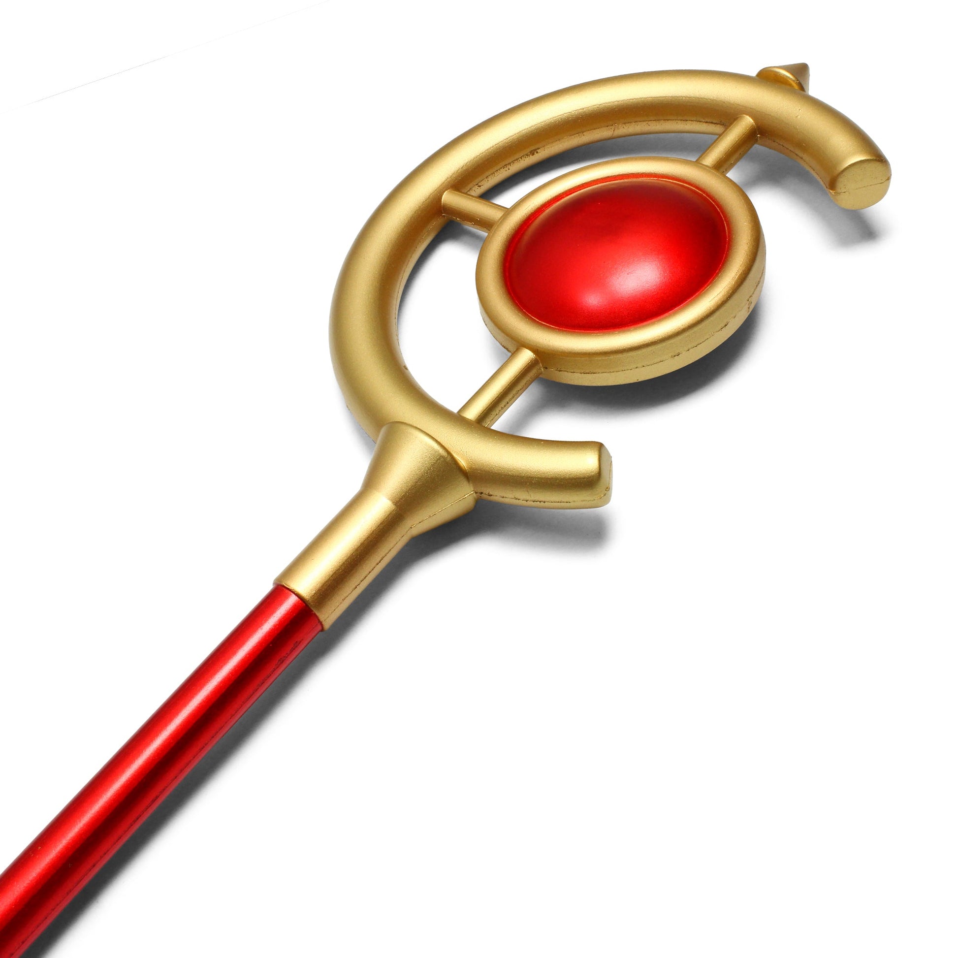 Harness the power of the legendary mage Frieren with this stunning replica of Frieren's Magic Staff from Frieren: Beyond Journey's End. Designed for cosplay, collection, or display, this foam replica brings the iconic staff to life, making it perfect for fans of the series. Measuring 39.75” in total length, it features a beautifully crafted 10" x 8" foam staff head with gold and red accents, complemented by a sleek 29.75" red foam shaft. Whether you're recreating Frieren’s spell-casting abilities or adding it to your collection of anime memorabilia, this staff offers a lightweight, safe, and highly detailed design, ensuring accuracy and fan satisfaction.