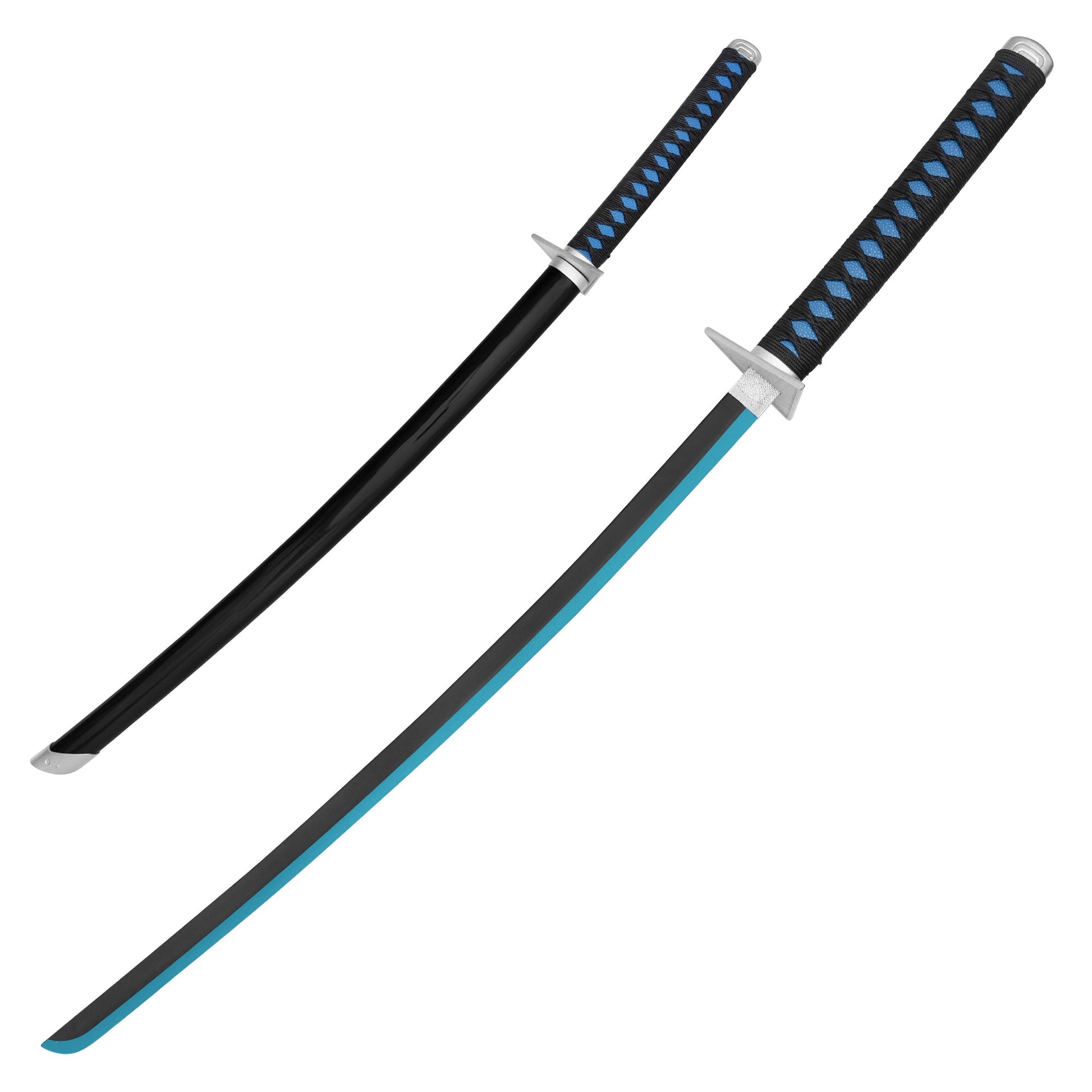 The Nagao Kei's Blue Katana Replica from the world of Virtual Youtuber brings Nagao Kei’s unique samurai aesthetic to life with a modern flair. This 37.5” stainless steel replica features a 26.5” two-tone blade that showcases a vivid blue edge, creating a striking contrast against the sleek black finish. The 11” handle is expertly wrapped in blue and black for a comfortable and authentic grip, making it perfect for cosplay, display, or collection. Paired with a black saya for secure storage and an elegant finish, this collectible katana channels the digital warrior’s sleek and futuristic style. Fans of Virtual Youtuber and collectors of striking anime weapons alike will appreciate this piece as a centerpiece to any collection.