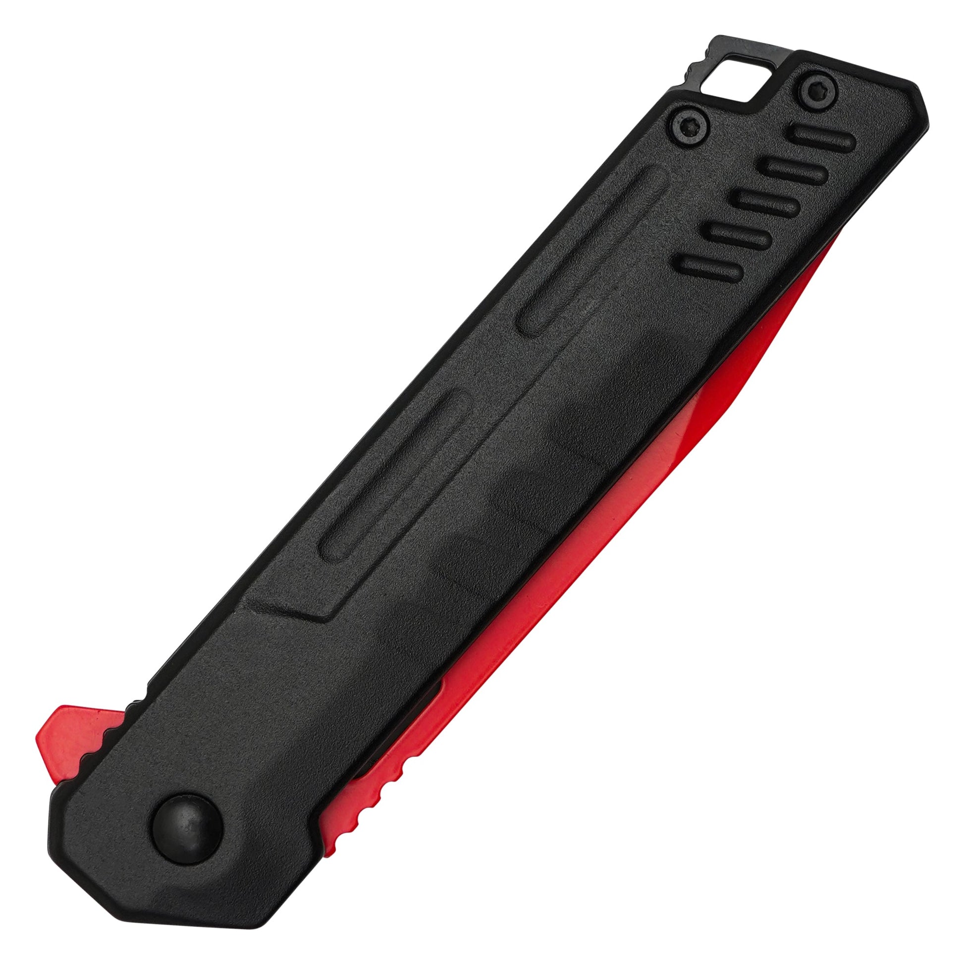 The Wartech Red & Black Spring Assisted Pocket Knife is a compact everyday carry designed with a bold color contrast and a clean, practical profile for daily use. It features a 3.25" red perforated steel blade that helps reduce weight while maintaining reliable cutting performance for light tasks and general utility. The spring-assisted mechanism allows for smooth, fast deployment, making it convenient for quick one-handed use. A 4.5" black aluminum handle keeps the knife lightweight while providing a sturdy, comfortable grip with a straightforward, no-nonsense feel. Finished with a belt clip and an integrated lanyard hole, this knife is built for easy carry and simple, dependable EDC performance.